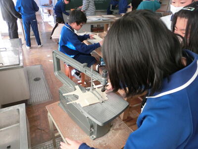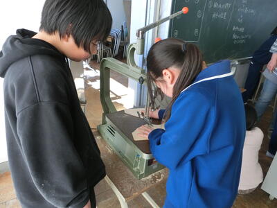 板を切っている友達からの合図に合わせてペアの子が機械のスイッチを操作するなど、協力して作業することができました。