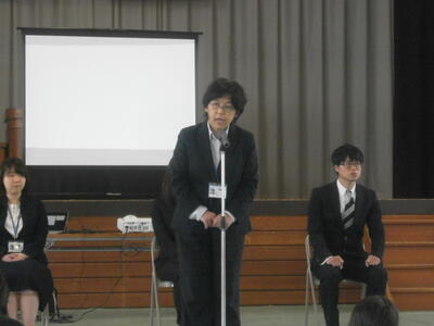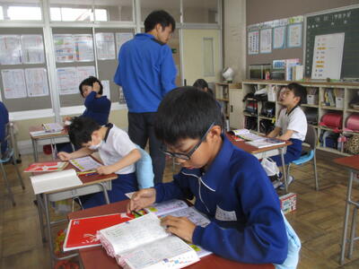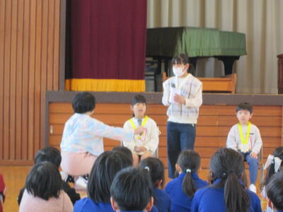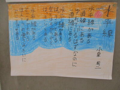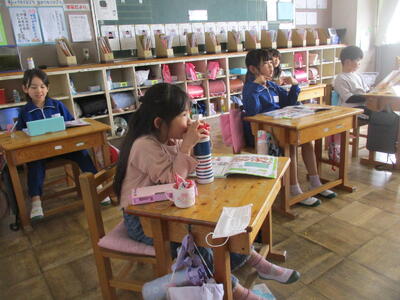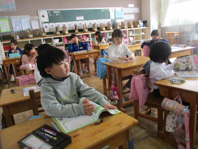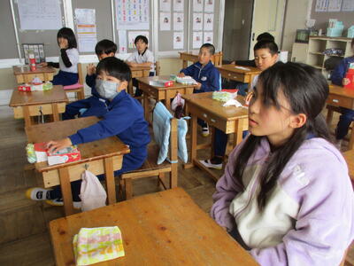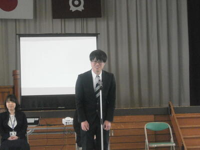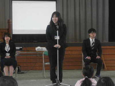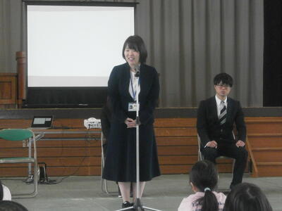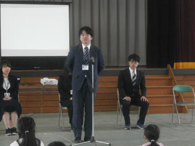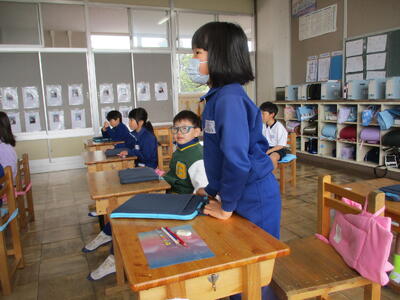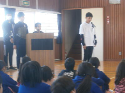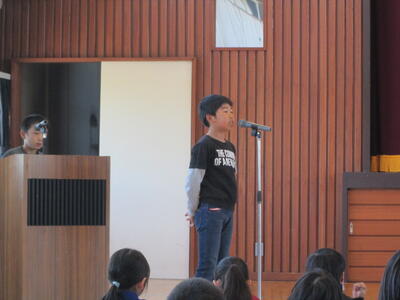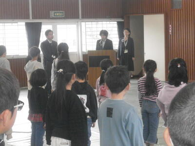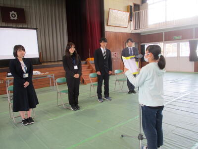 「新しくいらっしゃった先生方へ大内東小学校に来てくださってとても嬉しいです。私たちは新しい先生方に会うことを楽しみにしていました。この学校は、児童数が少ないですが学年関係なく、みんな仲良しで毎日楽しく過ごしています。休み時間にはときどき先生といっしょに遊ぶこともあります。また、郷土資料館や学校林があり、昔の物や自然に触れることができます。他にも自主学習をがんばっていたり、長距離走記録会で全力を出したりするなど、大内東小学校のよいところがたくさんあります。これから、新しい先生方にたくさんのことを教えていただいたり、お話をしたりすることがとても楽しみです。どうぞよろしくお願いします。」