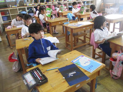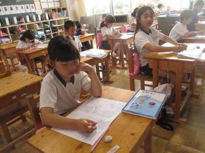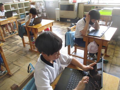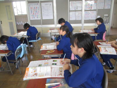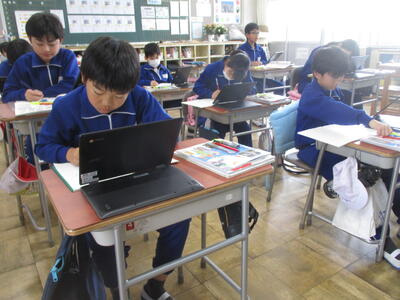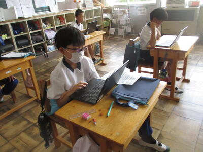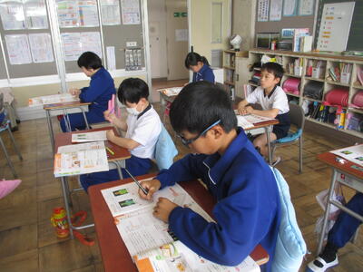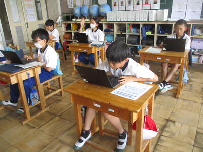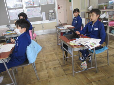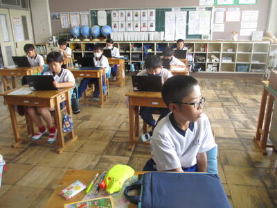 4年生 タブレットを使って、とちぎっ子学力調査の質問紙を入力しました。