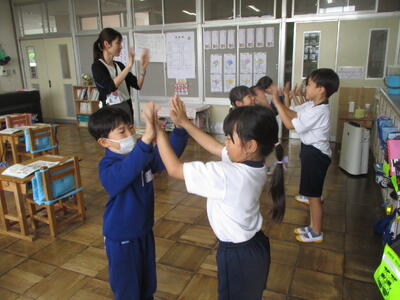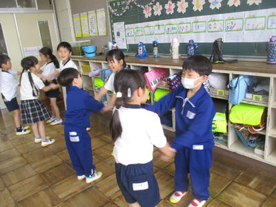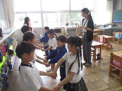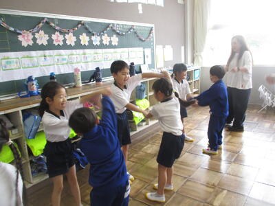 1年生 音楽 体全体をつかって、踊りながら、歌いました。