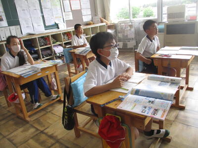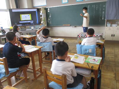 1年生 音楽 手を叩きながら、リズムの学習をしました。
