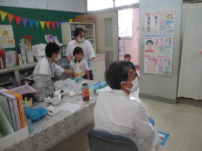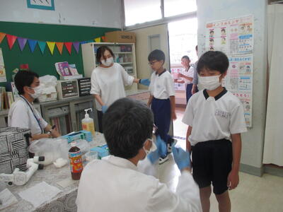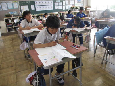 2年生 一部の人が食べ終えて、後片付けをしています。