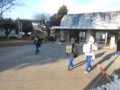1年生がいない淋しい登校風景となりました。残念ながら今週の持久走大会につきましては中止とさせていただきました。楽しみにしていた児童もいると思いますが、何卒ご理解いただければと思います。