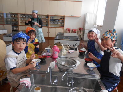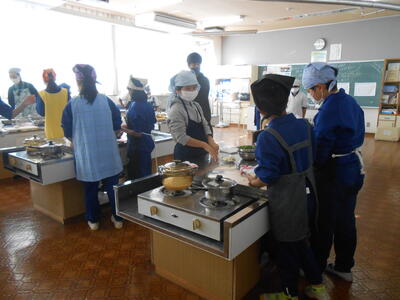 6年生は、調理実習で一人一品を工夫してつくっていました。給食と一緒においしく食べたそうです。