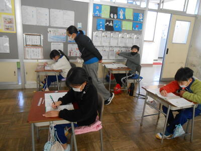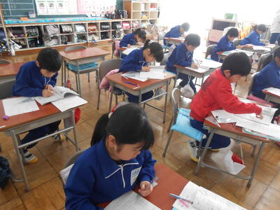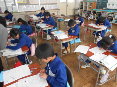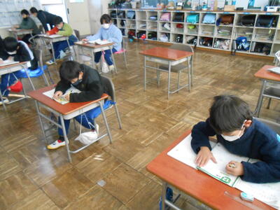 算数の学力調査です。これまで学習してきた内容の出題です。高学年は自主学習などで工夫して復習してきた様子がありました。家庭学習強化週間でのおうちの方のご協力もありがとうございました。