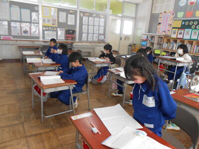 4年生は、各自で算数のまとめの問題に挑戦していました。