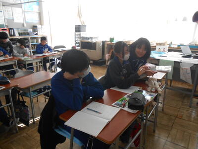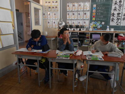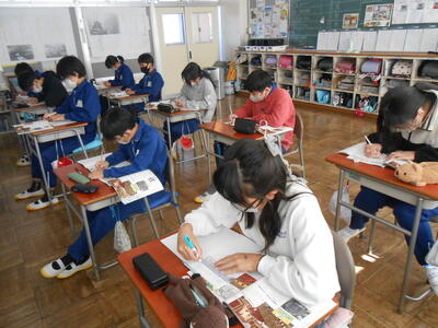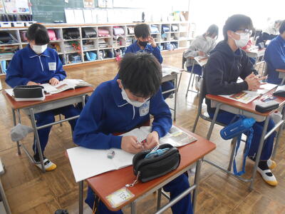 2時間目は社会科の学力調査に真剣に取り組んでいました。選択式が多かったように思いますが、長い文章や資料などを読み取る力が必要な設問ばかりでした。