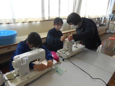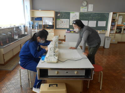 5年生は、ALTと一緒に外国語の授業で、お店でのやり取りのシーンでした。何がほしいか、食べたいかを店員に伝え、いくらになるかを英語で答えていました。6年生は、家庭科で、裁縫の学習でした。さいこうクラブのボランティアの方々に支援していただきました。
