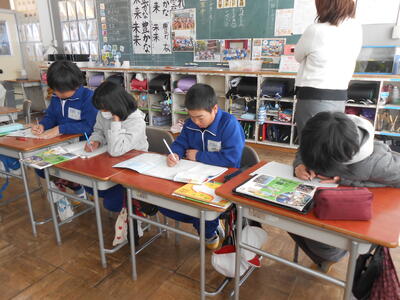 3年生は、国語で、レポートづくりでした。自分の力でだいぶ進んできたようです。