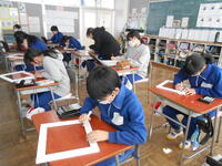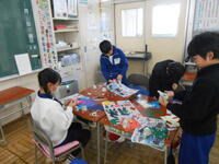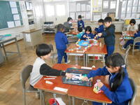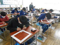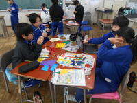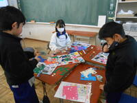 5年生は、国語の授業でした。書くことの学習で、反対意見を予想しながら自分の考えたことや伝えたいことを書き、発表していました。6年生は、図工で卒業作品制作の続きの作業でした。フレームの飾りを立体的な仕上げ方が難しそうでした。