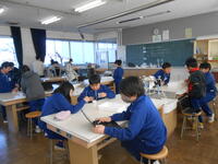 5年生は、家庭科でエプロンの作製でした。しつけ、アイロンがけ、ミシン縫いなど丁寧に取り組んでいました。6年生は、社会科の授業でした。昭和の戦争時代の人々の暮らしについて確認をしていました。食料が不足していたり徴兵されたり、厳しい生活だと感じているようでした。