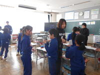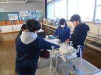 5年生も6年生も理科の授業でした。物の溶け方で、食塩とミョウバンがどのように溶けていくのか実験をしていました。実験は成功するでしょうか。6年生は、大地のつくりと変化の単元で、火山活動や地震による地殻変動について、映像等を見ながら学習していました。