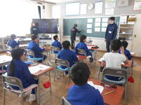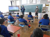 1年生は音楽の授業でした。鍵盤ハーモニカで「こいぬのマーチ」「きらきらぼし」「ひのまる」を上手に合わせて演奏していました。2年生は、国語の反対の意味の学習でした。形容詞の「広い」、「細い」「長い」などの反対の言葉を確認していました。よくできていました。