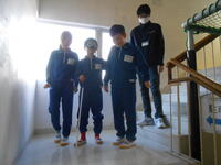 今日の体験は、インスタントシニアの体験でした。足に重りをつけたり、肘が曲がらないように固定したり、見えにくくするために、眼鏡をかけたりしながら、階段を上り下りしました。体が動きにくいことを体験し、お年寄りや体が不自由な人には、寄り添っていくことを学習しました。