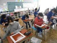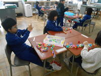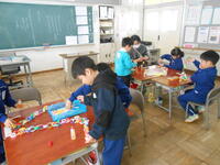 1年生は、生活科の時間で、来年度入学する児童を迎えるための輪飾りを作っていました。色味を考えて上手にできていました。2年生は、道徳の授業で、登場人物の気持ちを考えていました。