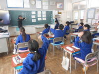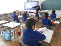 1、2年生は、国語の授業でした。「子どもをまもるどうぶつたち」の教材文で、動物はどのように子供を守るのか読み取っていました。2年生は、漢字の総まとめで、1年生から学習してきた漢字を正確に書けるようにプリントで確認をしていました。