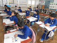 1年生は道徳の授業でした。困っている人や助けが必要な人には、どうすればよいか自分の考えをまとめていました。「優しくしたい」「親切にしたい」「大切にしたい」という意見がありました。2年生は、国語の時間でした。これまで学習した漢字が正しく書けるか確認をしていました。