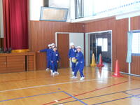 5年生は、算数の授業でした。図形の学習で、円や半円の長さを求める問題に取り組んでいました。6年生は、旗当番を5年生に引き継ぐためにみんなで実演をまじえて確認をしていました。