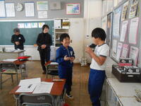5年生は、外国語の時間でした。発音とスペルの違った単語を見分ける問題に取り組んでいました。アルファベットで正しく書けないと理解できないようなレベルの高い学習でした。6年生はてこの働きの学習で、支点からの力点の位置や作用点の位置を変えて、力が軽くてすむのはどういうときかを実験で確かめていました。