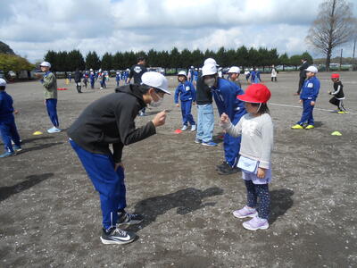 1年生は、体育の研究授業がありました。跳び箱で遊びで、動物のまねをして手足を使い自分の体を支える運藤をした後は、跳び箱にとび乗ったり、馬とびをしたり、自分のめあてにむかって楽しく活動できました。幼保小の事業も兼ねていたので、幼稚園の先生方も来て参観していただきました。