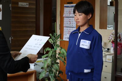 今日の朝も霜が降り、畑は一面真っ白になっていました。吐く息は白く、手袋は必需品です。交通指導員やスクールガードの皆さんには、寒い中、毎朝大変お世話になっております。