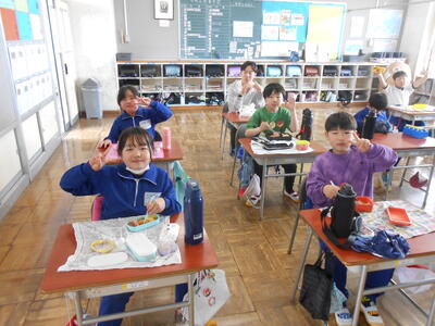 2年生は、音楽の時間で、歌の発表をしていました。「ゆうやけ こやけ」を音程に気を付けて、少人数でもしっかりと歌っていました。4年生は、国語の授業で、「言葉の意味と使い方」の学習でした。複数の意味をもつ言葉でクイズをつくっていました。