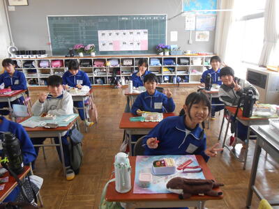 今朝も霜が降り、寒い朝となりました。今日はお弁当の日です。お弁当を手に、元気に登校できました。
