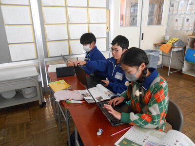 5年生は、家庭科の授業でした。2学期から作成を続けているエプロンのミシン縫いを行っていました。6年生は外国語でした。思い出のスピーチ資料を作成していました。