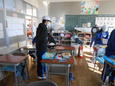 5時間目は、大掃除でした。6年生も自分の持つ物の整理をした後、特別教室などのワックスを塗る前の水ぶきをしてくれました。