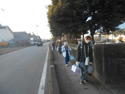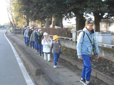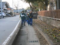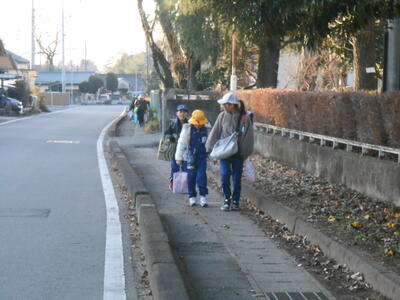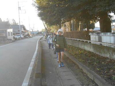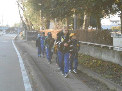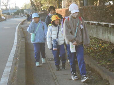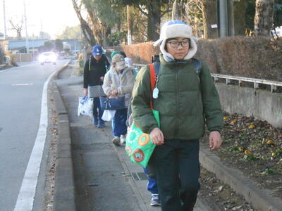 学区内の通学路には坂道がありますが、歩いて来ることで体力つくりになっている子もいます。1年生も頑張っています。