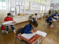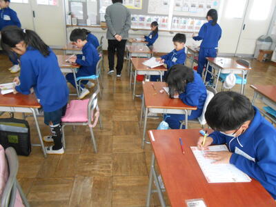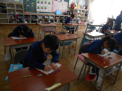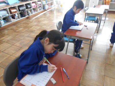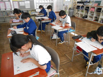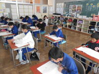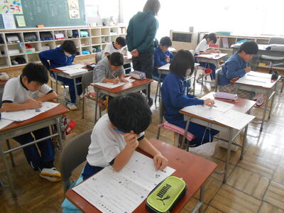 校内学力調査で「国語」に取り組んでいました。どの学年も真剣に取り組んでいました。早く終わった児童は、見直しを何度もやったり、別のプリントに取り組んだりしていました。3年生は、明日2教科を行うそうです。