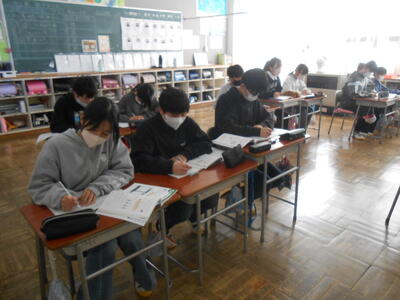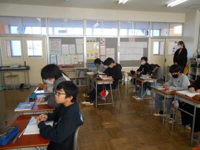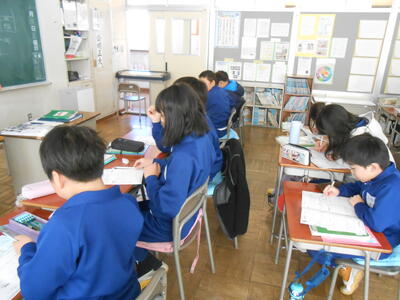 5年生は、家庭科の授業で、テスト前にこれまで学習したことを復習確認をしていました。教師の質問にも的確に答えていました。6年生は、学活で、キャリアパスポートで振り返りを行っていました。これまでの積み重ねで成長していることを実感していました。