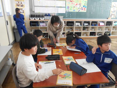 3年生は、物語「モチモチの木」の学習でした。登場人物を整理したり、感想を書いたりしていました。4年生は、2学期の復習プリントを行っていました。くわしくする言葉(修飾語)の捉え方が難しいようでした。