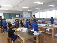 3年生は、紙粘土を使って、家から持ってきた空き瓶などに飾りをつけ、物入をつくっていました。イメージどおりつくれるように、色彩も工夫して取り組んでいました。