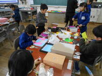1~3年生は図工の時間でした。1年生は、箱におりがみやモールなどを飾りつけ、大切ボックスを楽しそうに作成していました。