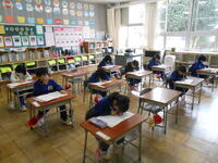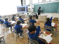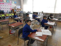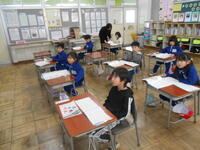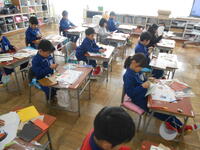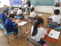 1、2年生は、国語の授業でした。「子どもをまもるどうぶつたち」の教材文で、動物はどのように子供を守るのか読み取っていました。2年生は、漢字の総まとめで、1年生から学習してきた漢字を正確に書けるようにプリントで確認をしていました。