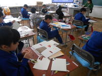 1年生は、算数の授業でした。大きな数の足し算で、2桁+1桁や1桁+2桁の計算の学習を行ったいました。2年生は、図工の時間で版画でした。海の中の様子や動物、自分の好きなものを8色の色で表現していました。