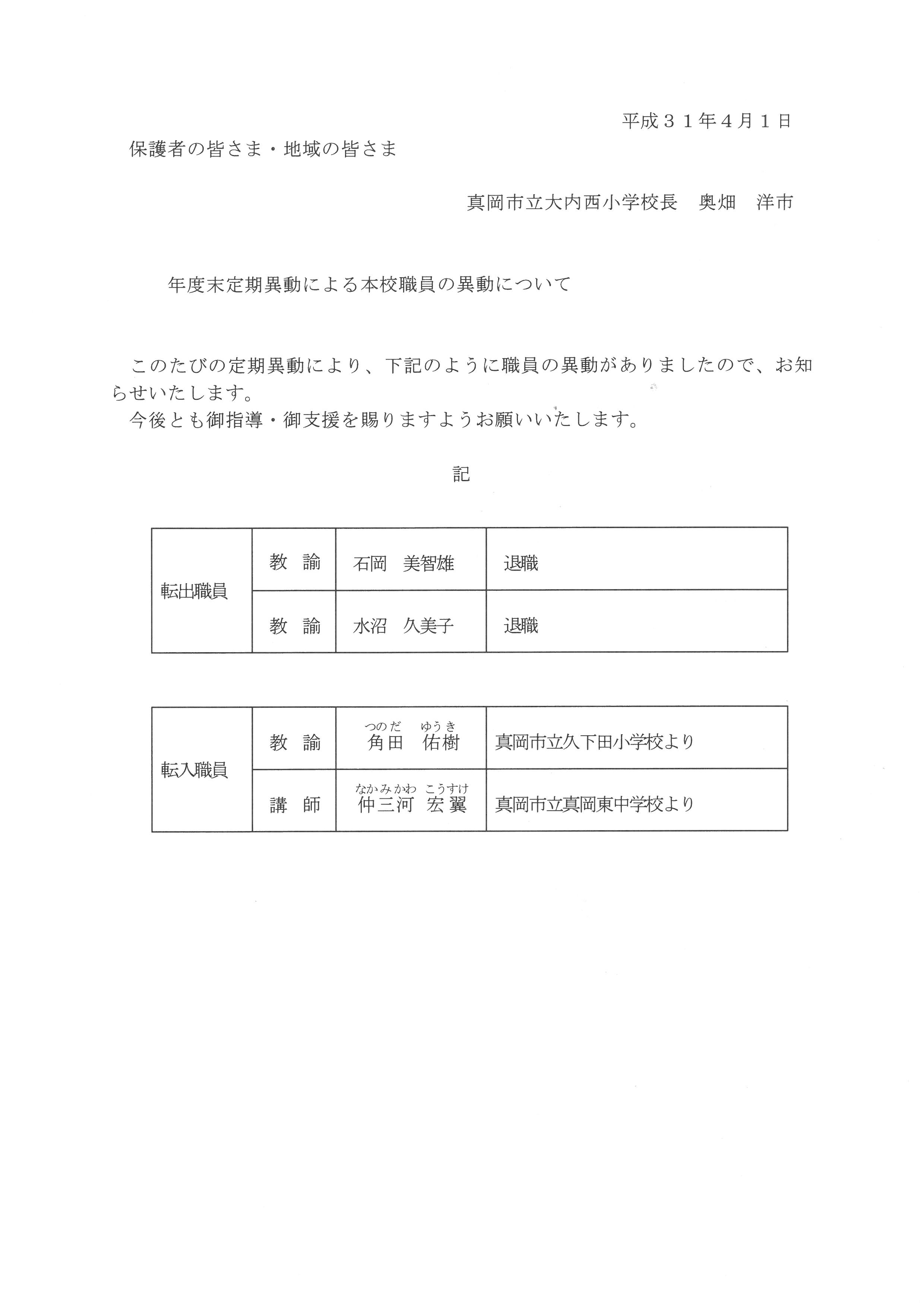 職員の異動について