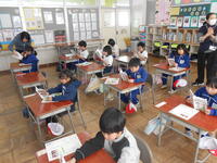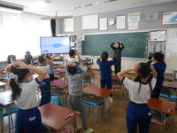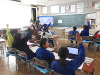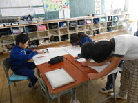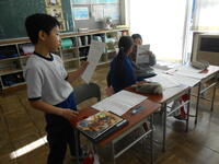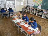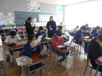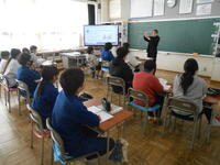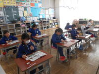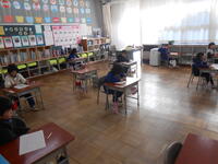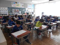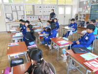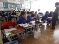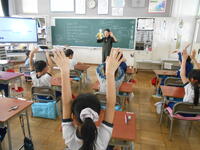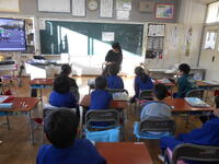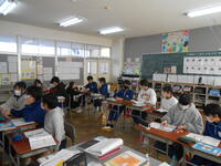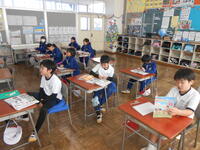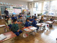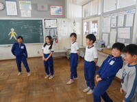 1年生は、音楽の授業でした。6年生へ送るための歌を決めていました。候補の「世界に一つだけの花」の歌詞のどんなところがよかったか伝えていました。2年生は、外国語活動の時間でした。英語の体の名前を、歌やチャンツ、体を使って身に付けるよう活動していました。