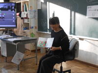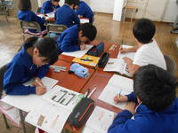 4~6年生は、算数の授業でした。4年生は、少数のかけ算の計算の仕方を確認していました。5年生は、ひし形の面積の公式を求めていました。6年生は、変わり方の学習で、4つの中から3つを選ぶとき、過不足なく選べる方法を考えていました。
