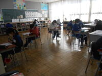 今日も機能に引き続き校内学力調査がありました。「算数」でしたが、1、2年生の中には、すぐに終わってしまった子もいたようで、しっかり定着が図られているようでした。高学年も基礎・基本については、すらすらと解いている様子が見られました。