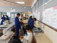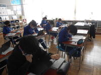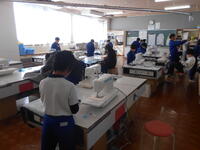 5年生は、家庭科の授業でした。2学期から作成を続けているエプロンのミシン縫いを行っていました。6年生は外国語でした。思い出のスピーチ資料を作成していました。