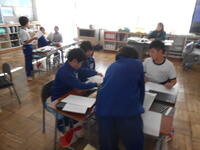 3年生は、外国語活動の時間でした。これまでやってきたクイズの中から、自分でオリジナルクイズをつくる活動でした。4年生は、算数の学力調査の振り返りでした。間違った応用問題と向き合い、自力解決していました。