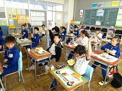 今日から1週間は「給食残量調査」だそうです。給食センターが各献立ごとに残量を調べて、今後の給食の参考にするための調査です。そこで、給食の時間に各教室におじゃましました。