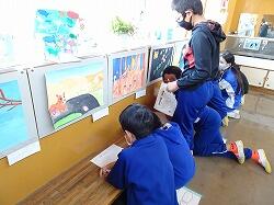 友だちの作品を見ながら、工夫しているところやよく描けているところを見つけてまとめています。