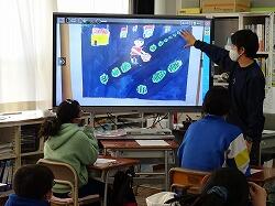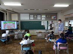 つづいて2年生の「外国語活動」におじゃましました。1・2年生は教科の時間にはありませんが、年間10時間程度、「外国語活動」を学習します。本校ではJTEの先生が担任の先生と一緒に指導します。