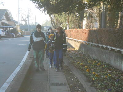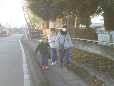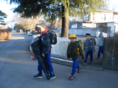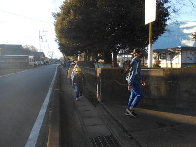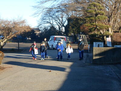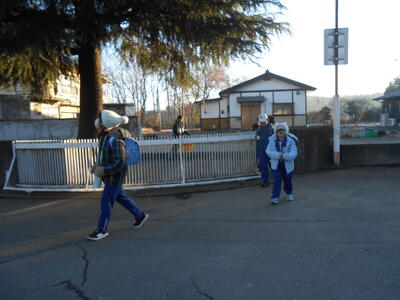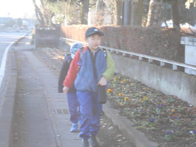 今朝も霜が真っ白でした。登校班では、班長と副班長さんが、低学年の児童に合わせながら歩き、安全に連れてきてくれています。「ありがとう!」