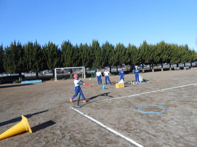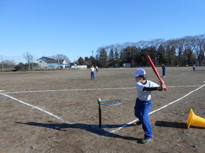 4年生は、校庭で体育をしていました。ベースボール型ゲームの「ティーボール」を行っていました。ルールを理解しチームで協力して取り組んでいました。