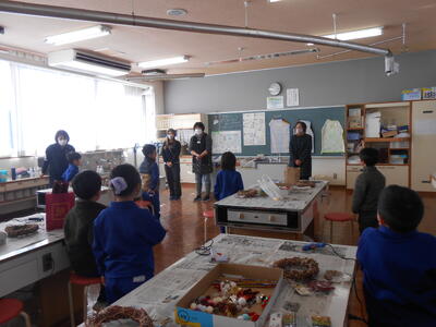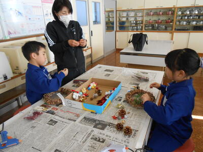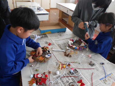 1年生も2年生も図工の時間でした。1年生は、クリスマスや冬をテーマに粘土で雪だるまやツリーなどつくっていました。2年生は、クリスマスカードをつくっていました。季節を感じる活動で、楽しそうに取り組んでいました。