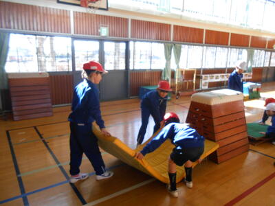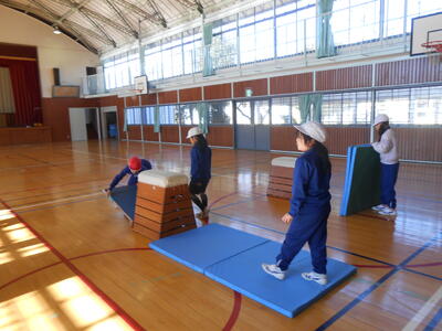2年生は、体育館で跳び箱遊びでした。協力して跳び箱やマットを用意し、高い段にもどんどん挑戦して、自分の力を試していました。